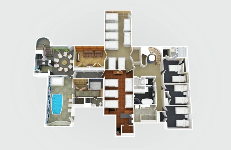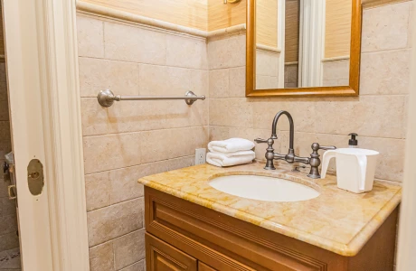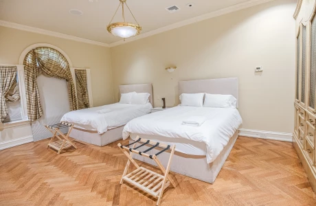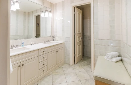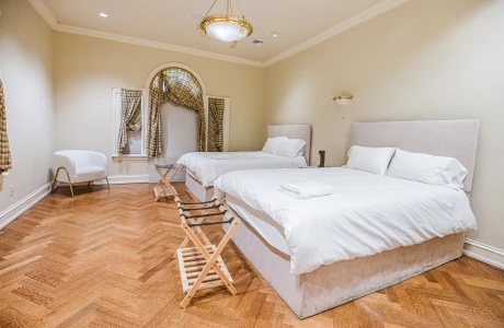 The Space: This two-story villa features 4 cozy bedrooms and 3 full bathrooms. The 1st floor boasts a huge living room with comfortable seating, perfect for relaxing after a long day, along with a fully equipped kosher kitchen. The kitchen has separate meat (fleishig) and dairy (milchig) sections, ensuring a fully kosher cooking experience. For your convenience, there’s also a half-bathroom on the first floor.