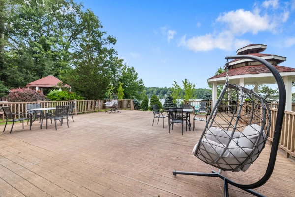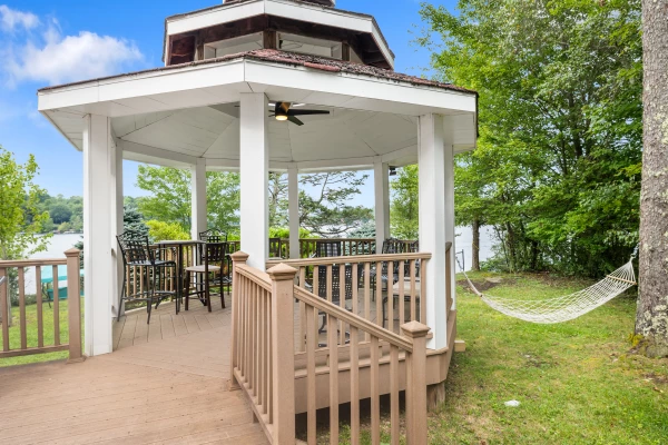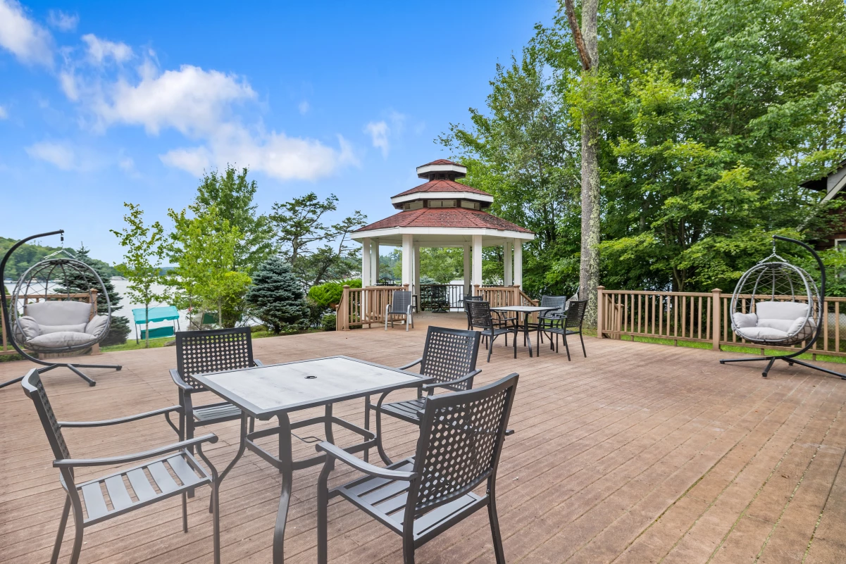 An outdoor discreet, in-gazebo. Step outside and breathe in the fresh lake air from our fully equipped patio, complete with a grill, table and lounge chairs for soaking up the sun. Take a refreshing dip in the lake from your private access or simply lounge on the shore and take in the breathtaking views. Views like you have never seen before!