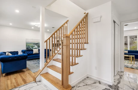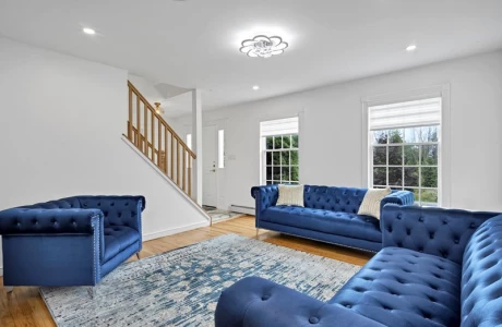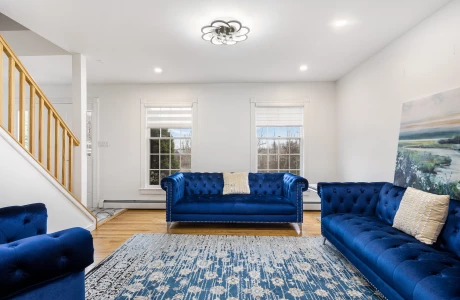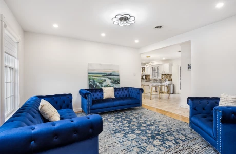 Modern Comfort: Enjoy the sleek, contemporary design throughout the home. The airy living room is perfect for relaxation, boasting large windows that fill the space with natural light.