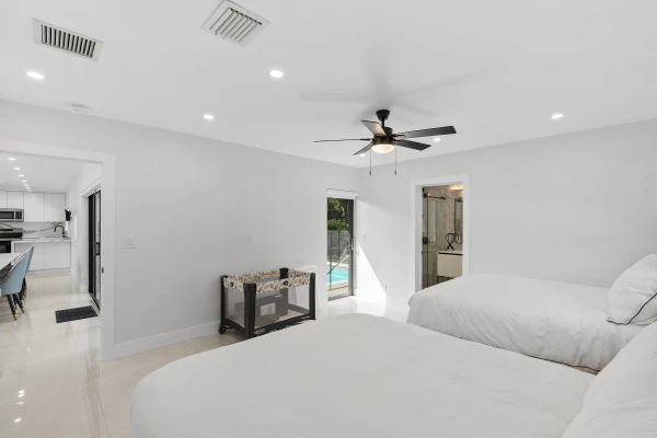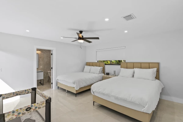 Welcome to your perfect getaway in the heart of North Miami Beach! This beautifully renovated, modern home offers a luxurious stay for families and groups alike. With four spacious bedrooms—including two ensuite master bedrooms—this property comfortably accommodates up to nine guests, ensuring everyone has their own personal space.