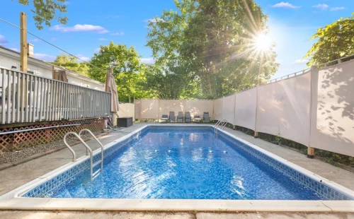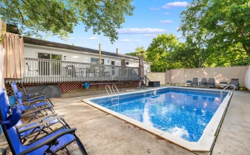 - Cool off during warmer months in the sparkling summer pool.