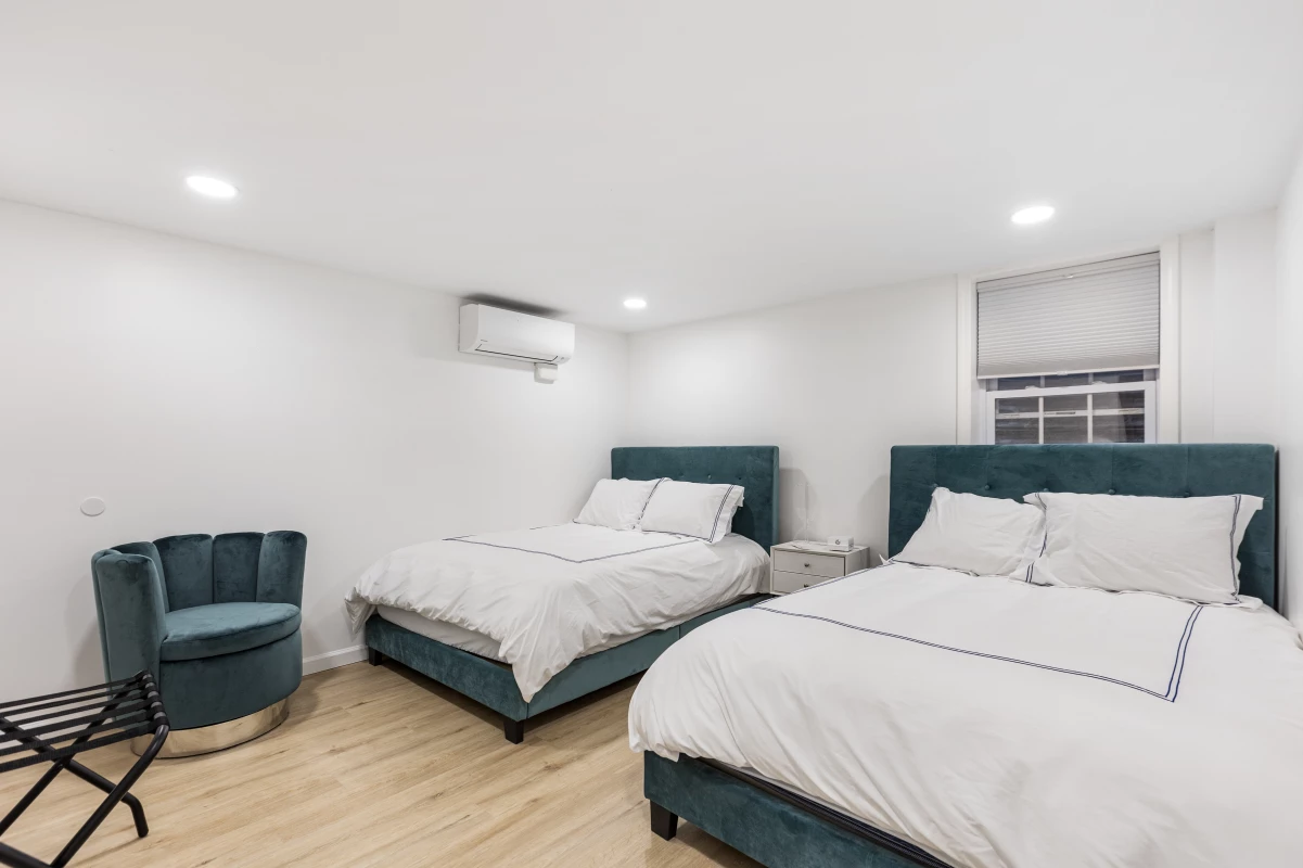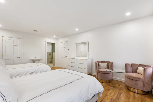 - Master bedroom with 2 full beds and an en-suite bathroom.