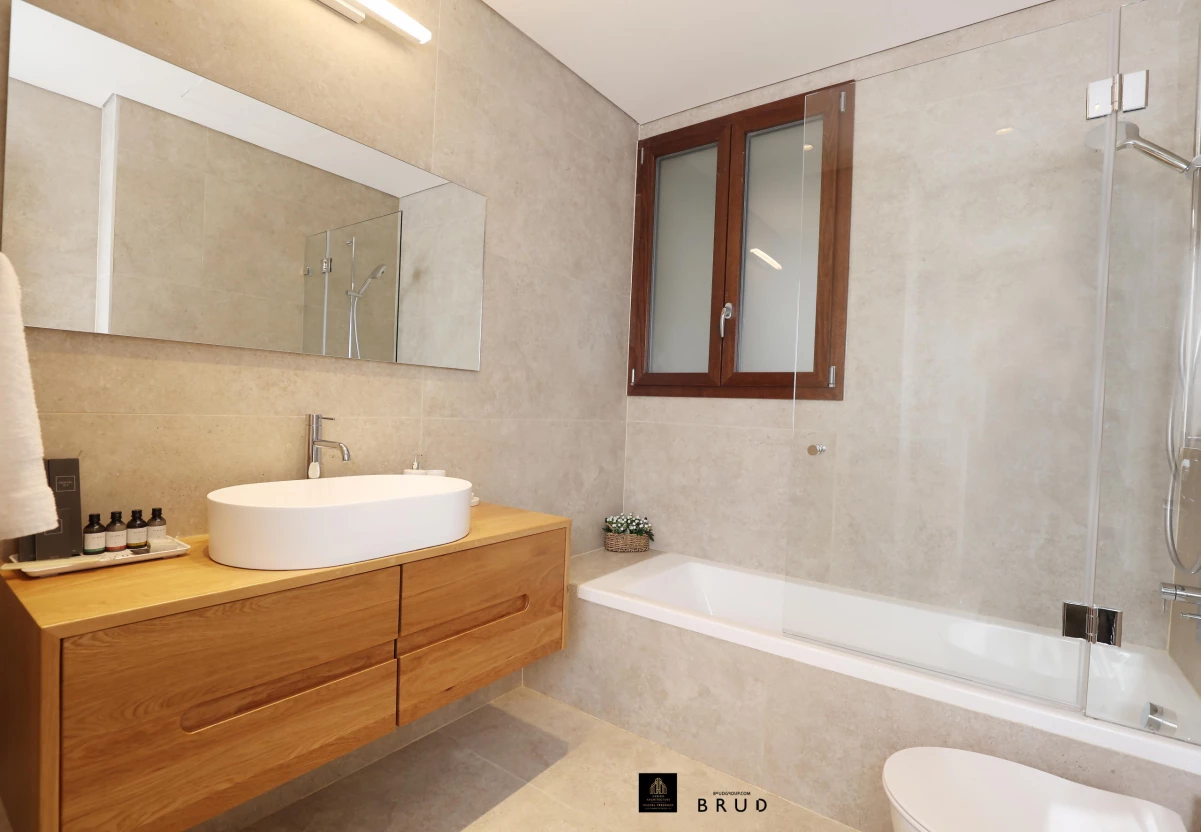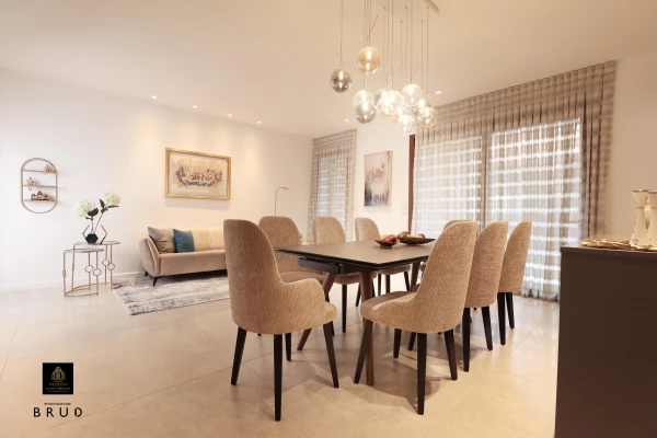 This beautiful, modern, brand new 3-Bedroom Apartment has 2 Bathrooms, plus another guest toilet. The master bedroom has wide beds and is en-suite. It has a beautiful fully equipped kitchen and dining room (semi combined) and 2 porches. The Apartment is situated on the first floor for your convenience.