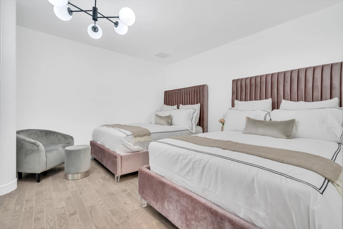 - Bedroom 2: Two luxurious queen beds and an ensuite bathroom.