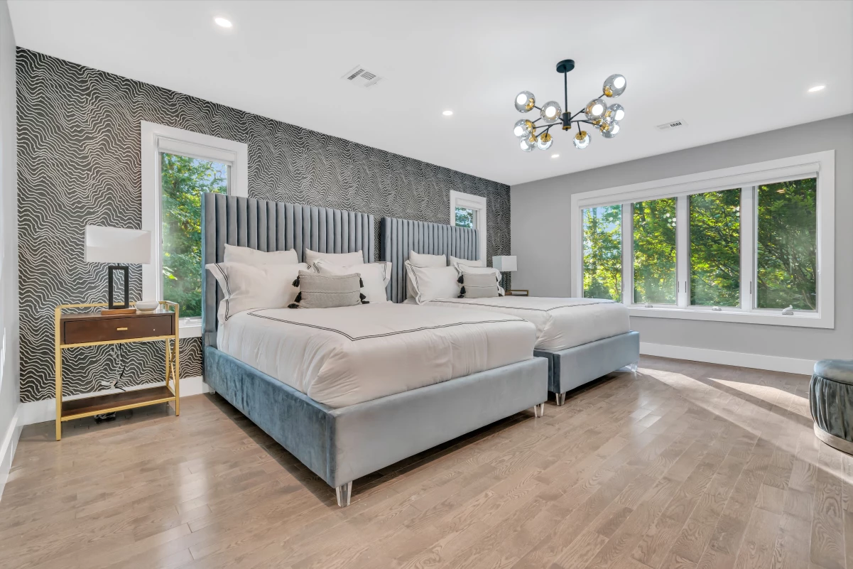 - Bedroom 15: Two cozy full-size beds for a comfortable poolside stay.