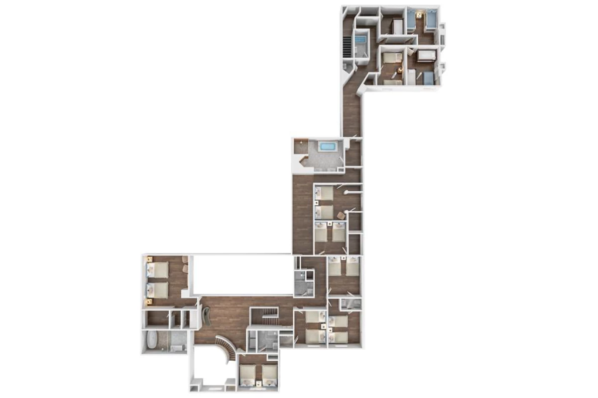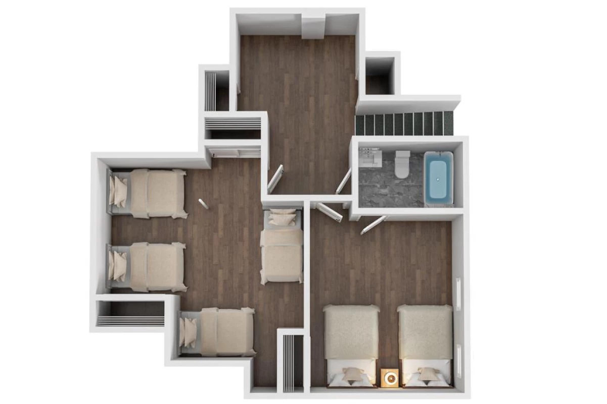- Bedrooms 3–6: Each features two full-size beds with private bathrooms, ideal for privacy and comfort.