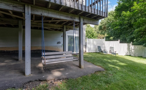 The spacious fenced-in backyard is a highlight of the property, featuring:
