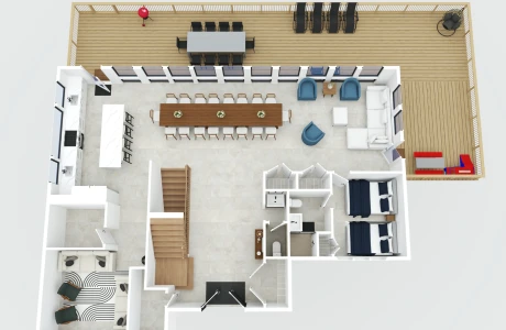 - Bedroom 2 (Upper Level): Another delightful room with two full-size beds, ideal for couples, siblings, or close friends.