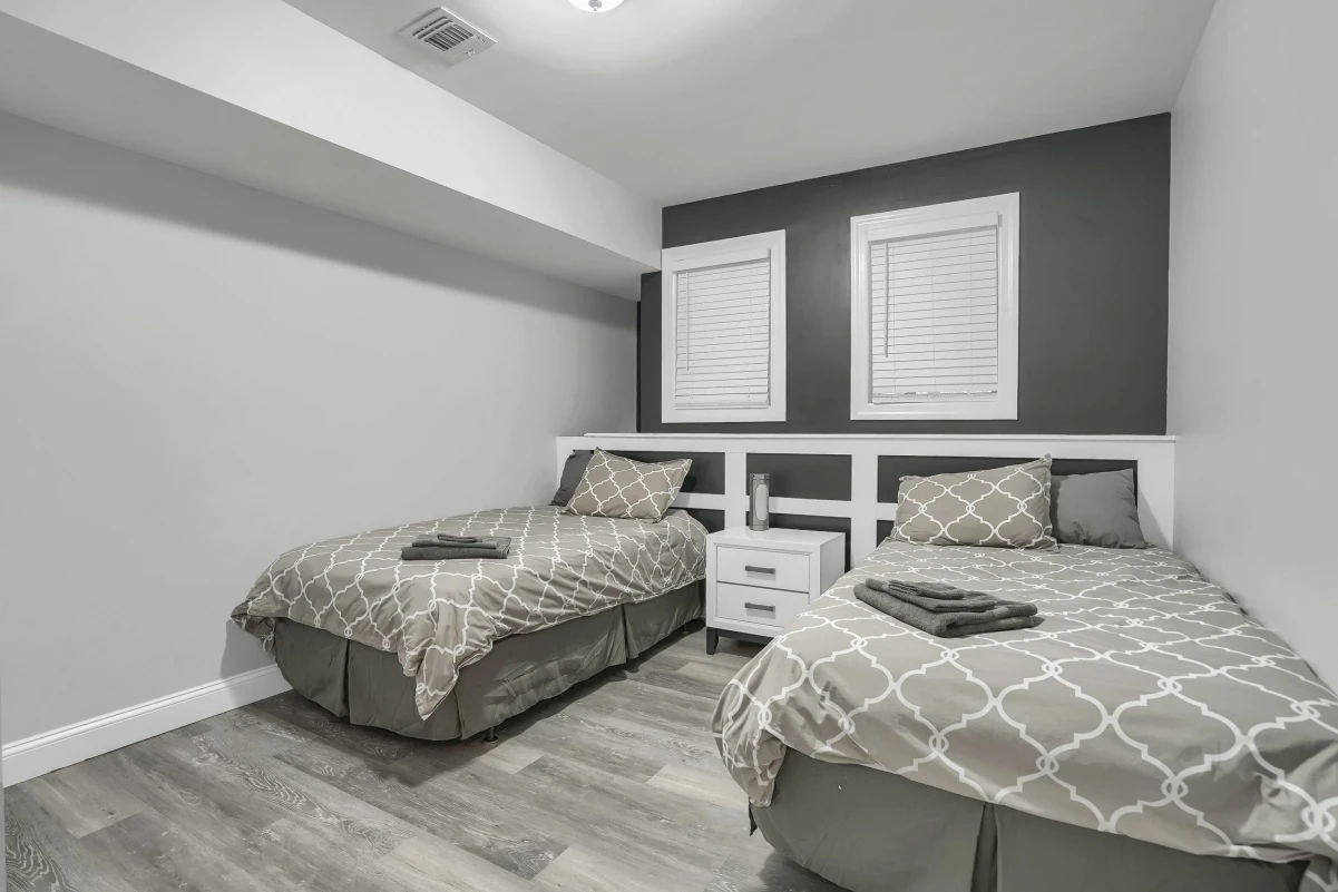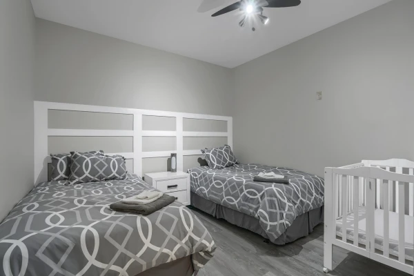 The Master Bedroom Suite is fitted with super comfortable queen beds, a Jacuzzi, and a large dressing closet.