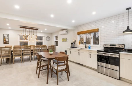 First Floor: Includes a fifth kids' bedroom, a large dining room, and a big kitchen, perfect for group meals and gatherings.