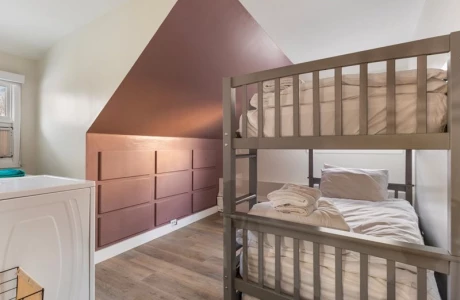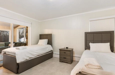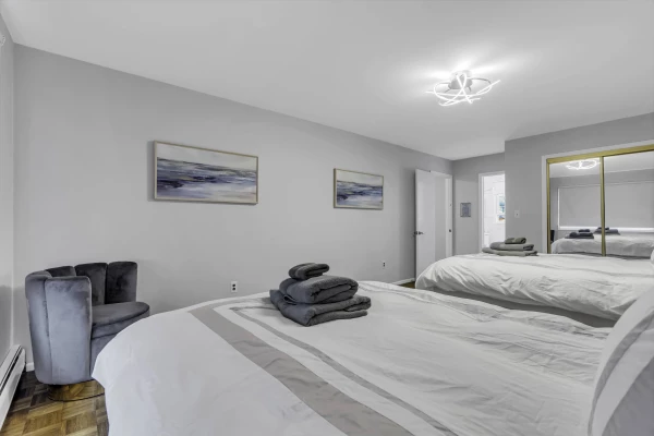 - Master Bedroom: 2 Full beds with an en-suite bathroom.