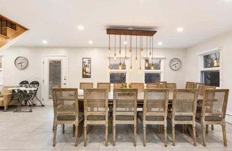 Welcome to The Palm Tree Villa, a spacious and private retreat located in Monroe, NY. Designed for families and groups, this villa offers a comfortable stay with modern amenities and a layout that accommodates up to 20 guests. Situated in Kiryas Joel (KJ), this property is just steps away from shuls and a mikvah, making it an ideal destination for those seeking a convenient and relaxing getaway.