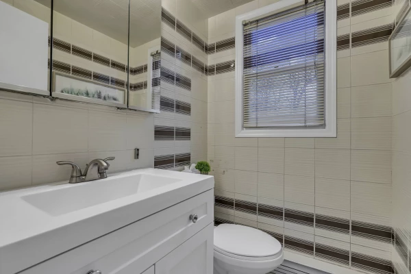 - First Floor: One full bathroom.