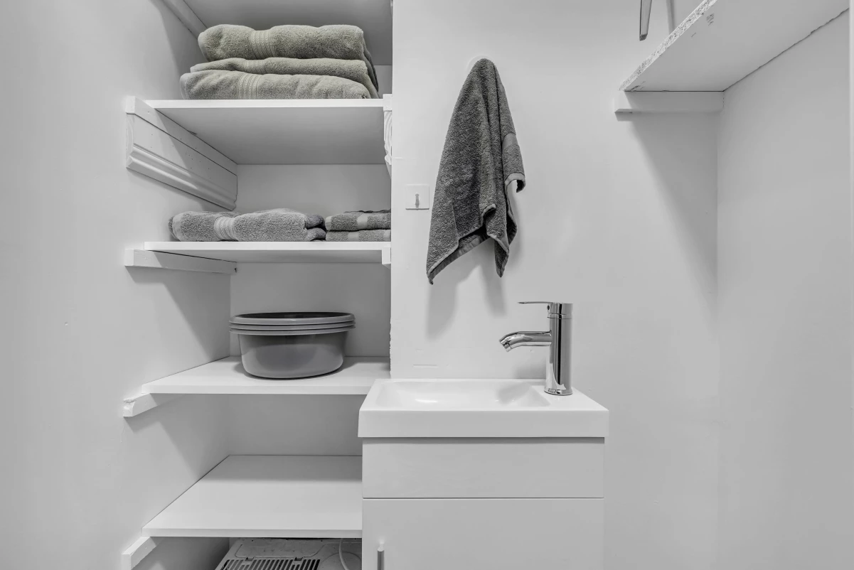 - A full bathroom is located in the hallway.